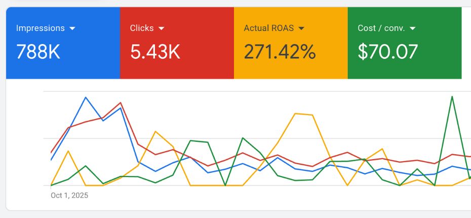 My responsibility includes full ownership of Search, Shopping, and Performance Max campaigns, continuous optimization, advanced tracking, and ongoing testing to ensure profitable growth.